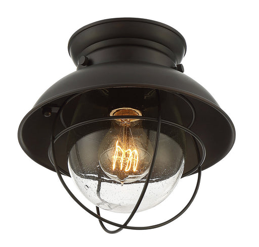 This 1-light ceiling flush mount light gives you cool nautical style with an outer cage protecting the clear seeded glass inner shade. Finished in ...