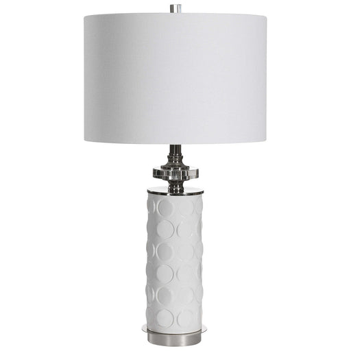 A Unique Play On Updated Traditional Style, This Ceramic Table Lamp Features A Dimensional Circle Motif Embossed Into The White Ceramic Base. Polis...