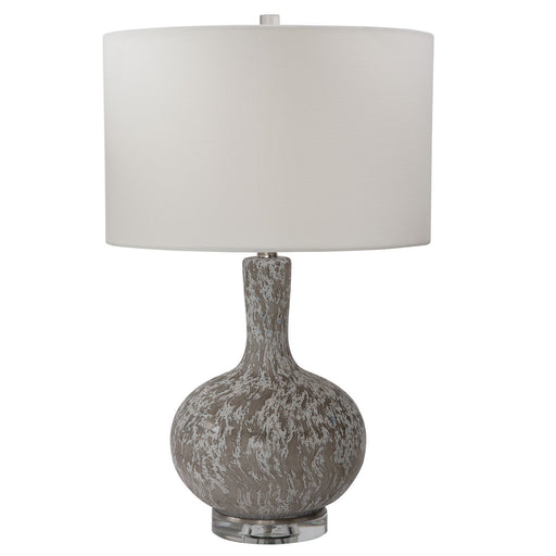 This Glass Table Lamp Features A Timeless Shape Finished In A Distressed White With A Myriad Of Black And Gray Flecks, Accented By A Thick Crystal ...