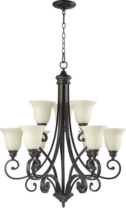 View full detailsQuorum 6154-9-186 Nine Light Chandelier, Oiled Bronze w/ Satin Opal