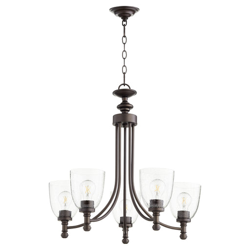 Quorum 6122-5-286 Five Light Chandelier, Oiled Bronze w/ Clear/Seeded
