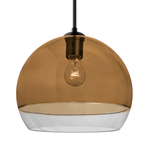 The Ally Amber Pendant is a contemporary design composed of a transparent Amber globe glass, with a clear bottom that is separated by an interestin...