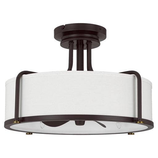 Nestled within the Calvary semi-flush mount's white fabric shade is a vintage-inspired fan, casting both a soft glow and cool, refreshing air via a...