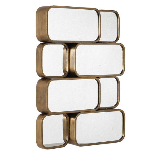 Craftily Connected Forged Iron Rectangles Finished In A Lightly Antiqued Gold Leaf. May Be Hung Horizontal Or Vertical.Details:Product Type: Mirror...