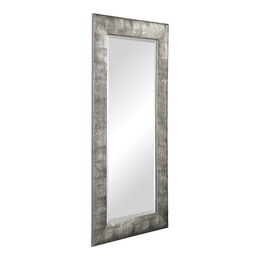 Solid Wood Frame Featuring An Embossed Wavy Texture, Finished In A Metallic Silver With A Light Gray Wash. Mirror Features A Generous 1 1/4" Bevel ...