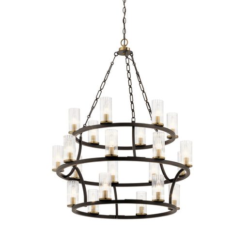 The Mathias 31" 15 light 2 tier chandelier features a simple rustic style in mixed finishes in Olde Bronze finish and clear ribbed glass. A perfect...