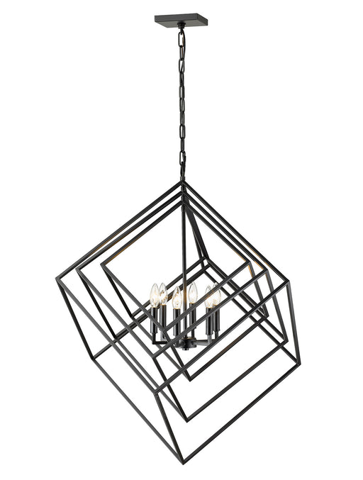 This eight-light chandelier features a geometric silhouette and a versatile display. Sleek lines are softened by the warm glow of the candelabra bu...
