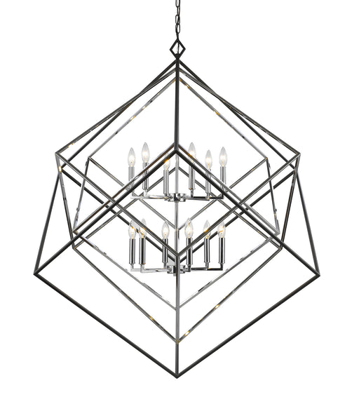 Sleekly modern shapes put geometry to the test in a stylish 12-light chandelier. Emphasize the edgy contemporary aesthetic of a living space with t...