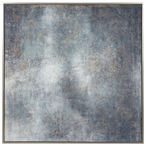 Misty Moonlight Is A Stunning Abstract Study Combining Cool Pewter Gray And White With Punches Of Cobalt And Powder Blue. Surrounded By A Naturally...