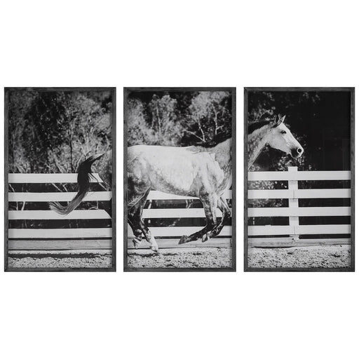 The Perfect Triptych For Equine Lovers, These Exclusive Prints Are Encased In Glass And Surrounded By Wooden Frames In A Black Finish With Ivory Ce...