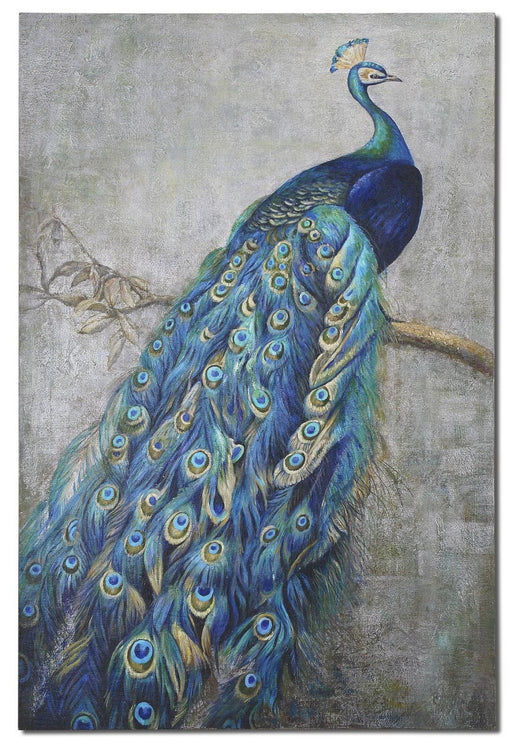 Refined Elegance Meets Eye-catching Vibrancy With This Hand Painted Peacock. Stunning Shades Of Turquoise, Green, And Yellow Are Painted On Burlap ...