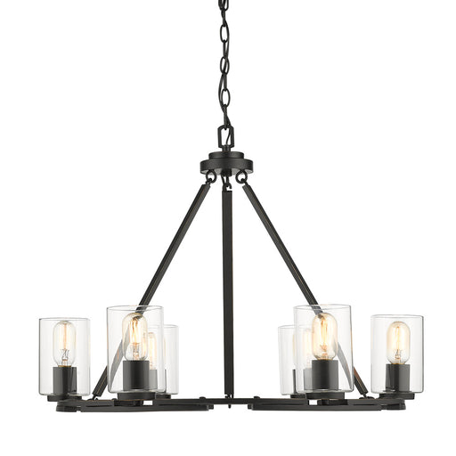 View full detailsGolden 7041-6 BLK-CLR Six Light Chandelier, Matte Black with Gold Highlights