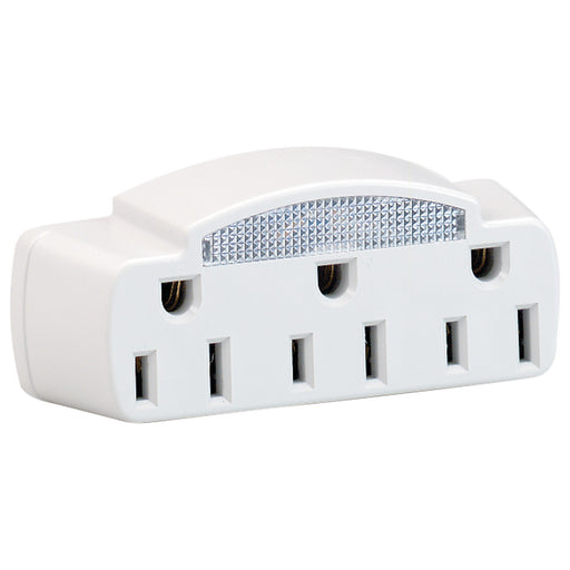 Single To Triple Adapter With Glow Light - White Finish - 15A-125V - 1875WDetails:Product Type: Fixture Accents/PartsFinish: WhiteMeasurements:Lamp...