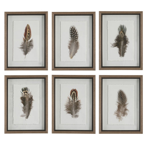 This Set Of Feather Artwork Adds Natural Charm To A Design. Each Exclusive Print Highlights A Different Flying Species In Various Brown, Cream, And...