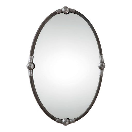 Narrow Iron Frame Finished In Rust Black With Burnished Silver Accents. May Be Hung Horizontal Or Vertical.Details:Product Type: Mirrors-Oval/Rd.Fi...