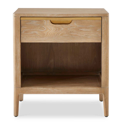 Composed Of Primarily Solid Oak In A Natural Light Finish, The Tabi Side Table Features A Single Drawer With An Open Shelf And Brass Plated Metal D...