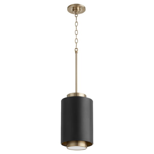 View full detailsQuorum 8013-5980 One Light Pendant, Matte Black/Aged Brass