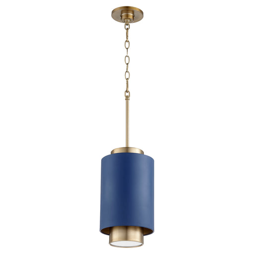 View full detailsQuorum 8012-3280 One Light Pendant, Aged Brass w/ Blue