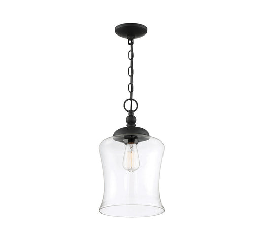 A curved, bell-shaped shade of clear glass imparts subdued yet dramatic style in this 1-light mini pendant, finished in Matte Black. It is 16.5" in...