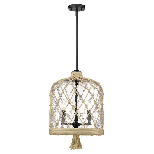 Enhance your coastal space with Nassau. Authentic fishnet knots in a clean white rope wrap the hammered clear glass shade. The rope finishes just b...