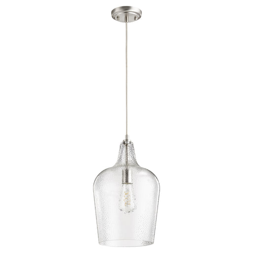 View full detailsQuorum 8192-65 One Light Pendant, Satin Nickel w/ Textured Glass