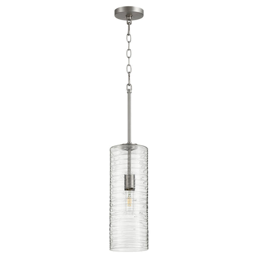 View full detailsQuorum 8191-65 One Light Pendant, Satin Nickel w/ Textured Glass