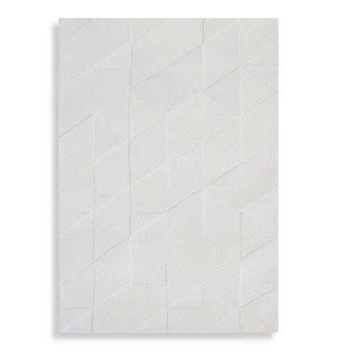 This Hand Tufted Rug Features Geometric Patterns With Linear Details In Ivory And Gray Wool In A Medium Cut Pile.Details:Product Type: Floor RugsFi...