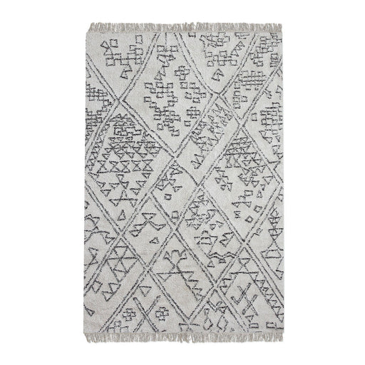 Table Tufted Ivory Cotton, Featuring A Distressed Tribal Inspired Pattern And A Plush Pile.Details:Product Type: Floor RugsFinish: IvoryMeasurement...