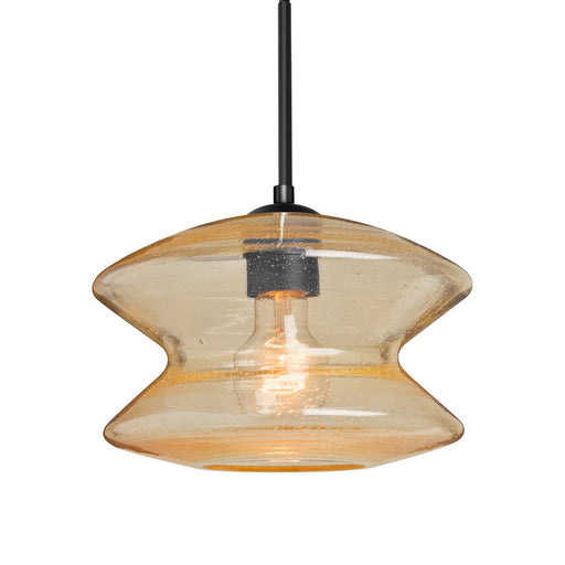 The Zen Latte Pendant is a transitional design composed of a transparent Latte ``Hour-Glass`` shaped glass , with an interesting bubble pattern blo...