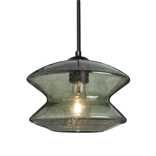 The Zen Moss Pendant is a transitional design composed of a transparent Moss "Hour-Glass" shaped glass , with an interesting bubble pattern blown r...