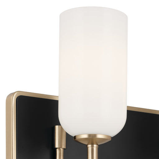 Inspired by simplicity, the Solia 2 light vanity dual-finished champagne bronze and black backplate adds visual interest. Solia's refined opal glas...
