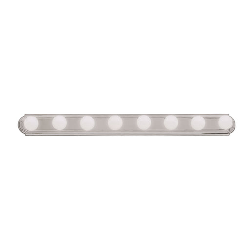 The sleek design of this 8 light bath bar means it fits neatly in many decors and spaces. Brushed Nickel finish with 8 white globes.Details:Product...