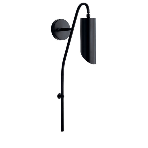 Trentino 1 light wall sconce is as much a sculpture as it is a light. Its funky stem, backplate, and tubular shade are in Black. Surprise รขยย the s...