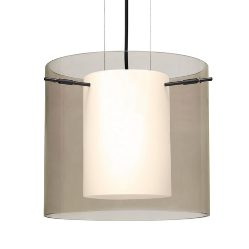 Pahu is a distinctive double-glass pendant, with an inner opal cylinder centered within a transparent outer glass. Our Trans-Smoke colored blown gl...