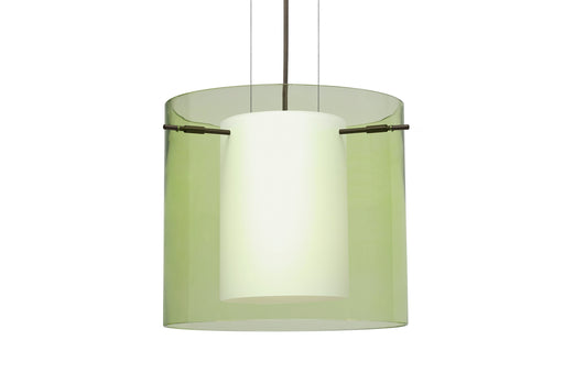 The Pahu is a distinctive double-glass pendant, with an inner opal cylinder centered within a transparent outer glass. Our Trans-Olive colored blow...