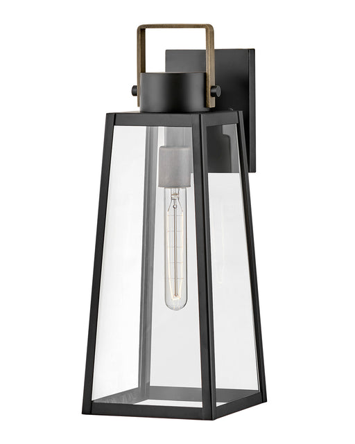 Albie brightens up any outdoor space with its minimalist modern profile. Clear seedy glass is complemented by a two-tone Black and Antique Brass fi...