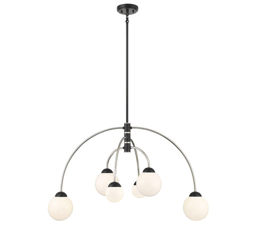 View full detailsMeridian M100114MBKPN Six Light Chandelier, Matte Black with Polished Nickel