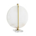 A modern study in geometric forms and mixed materials the Davenport delivers a simple sophisticated element to the space it occupies. A large snow marble disk is suspended by a thin antique brass pillar creating a striking visual contrast. A clear crystal base allows this piece to show like a sculptural work of art. Pair with the Davidson to create a more artistic narrative. Finish may vary.