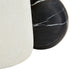 This modern sculpture nods to the geometry found in cubist art. Showcasing a foundation of mixed materials, the Hiroshi balances antique brass and white ricestone half-moon shapes against a black marble sphere. It`s a true contemporary art conversation piece. Finish of marble may vary.
