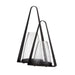 A pair of elegant hurricanes in clear seedy glass, Dayton offers a fresh twist on the traditional floor lantern. With a subtly tapered shape inspired by an equestrian stirrup, the sturdy base and handle of hammered blackened iron feature a top hoop for easy portability. Finish will vary.
