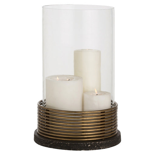 Antique Brass/Distressed Black Iron/Clear GlassDetails:Product Type: Candles/HoldersFinish: Antique Brass/Distressed Black IronMeasurements:Width /...