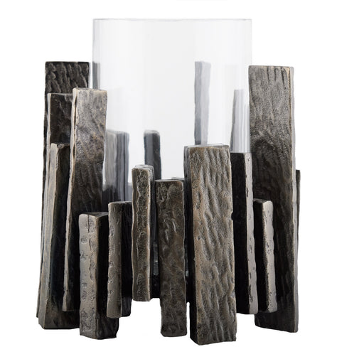 Inspired by Cubist jewelry, the Salvator hurricane is as much an art object as it is a striking vessel for candles. Craggy metal slices of antiqued...
