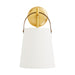 Simple design meets equestrian elegance with the Ian. An antique brass circular steel backplate acts as a hook to present a classic white linen shade. The shade is suspended by an English bronze steel strap that was inspired by stirrups, lending a cavalier appeal to this piece. Showcase solo next to a bedside or hang in multiples for a more masculine approach. Damp rated, though limited outdoor conditions may affect finish.
