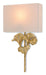 The Gingko Gold Wall Sconce is a botanical-inspired fixture in a Chinois antique gold leaf finish on its wrought iron frame. The leaves that fan out from a central stem are in perfect scale to the off-white shantung shade. The gold sconce meets ADA requirements.