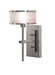 The Sea Gull Collection Casual Luxury one light wall sconce in brushed steel offers shadow-free lighting in your powder room, spa, or master bath room. Whether your decorating theme is traditional or contemporary, there is a place for this unique and stunning Casual Luxury chandelier and vanity lights. The organza shades and dark bronze or brushed steel plated finishes demand attention to the fine details of these fixtures. The wall brackets and sconces have a dual back plate for a dimensional design accent, and spun metal trim rings at the top and bottom of the shade lend a finishing touch. All of the shades on these wonderful fixtures are enclosed at the bottom for a lovely casting of light.