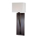 The rectangles of Selkirk's vertical backplate and horizontal box shade are contrasted with the lithe and sinuous form of its arms branching out from it in an evocation of natural grace. The arm's cubical shape as well as the box detail at its base amplify the sound aesthetic resonating throughout the piece.