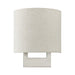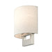 Raise the style bar with a designer wall sconce in a handsome and versatile contemporary manner. This one light wall sconce comes in a brushed nickel finish with a rectangular oatmeal fabric hardback shade.