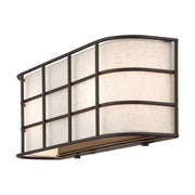 The Blanchard sconce will add refined style and a hint of mystery to your décor. The english bronze finish and an oatmeal handcrafted hardback shade create warm illumination, while soft light brings to life the intricate fretwork pattern. This double-light sconce will add a sophisticated and glamorous look to almost any interior design style. It will work great in the hallway, in the living room over the fireplace, bathroom or bedroom.
