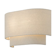 The Gladstone sconce is both modern and versatile. The hand-crafted ash gray colored fabric hardback shade sets a pleasant mood. The two-light double shade adds character to this handsomely styled ADA wall light. This sleek design is shown in an antique gold leaf finish.