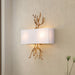 The Coral sconce is a two light beauty. Two flourishes of the coral shape highlight an off white fabric shade.